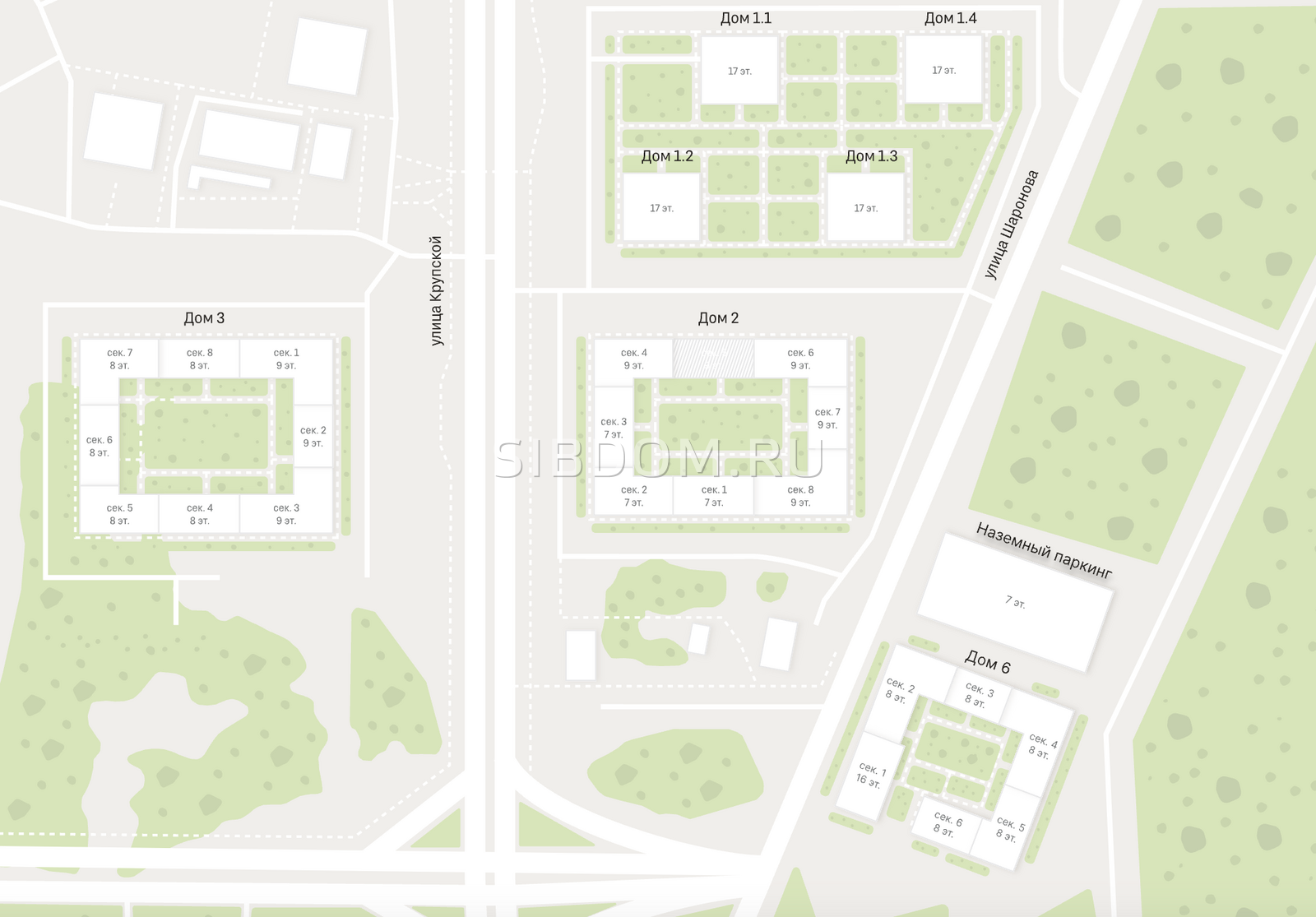 Дом №1-3 - это 17-этажный дом на 143 квартиры площадью от 21 до 118 кв.м.