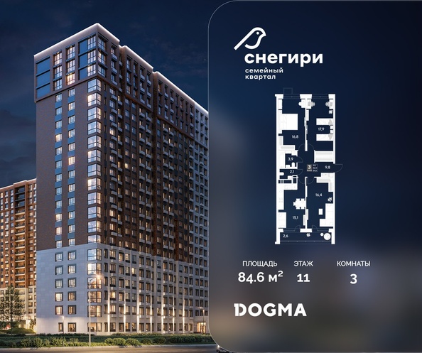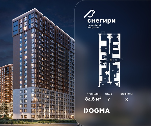 В продаже 3-комнатная квартира от застройщика! ЖК «Снегири» г. Омск, Литер 1