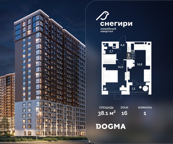 В продаже 1-комнатная квартира от застройщика! ЖК «Снегири» г. Омск, Литер 1