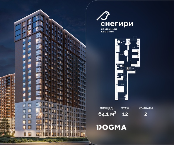 Срок сдачи: 4 кв. 2027, общей площадью 64.1 кв.м., на 2 этаже.