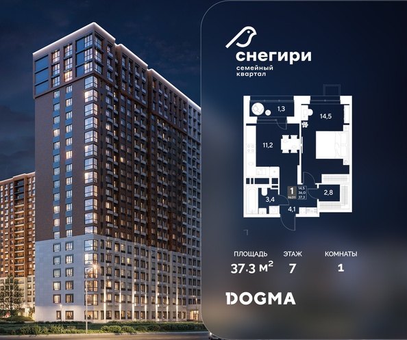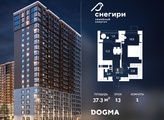 Срок сдачи: 4 кв. 2027, общей площадью 37.3 кв.м., на 7 этаже.