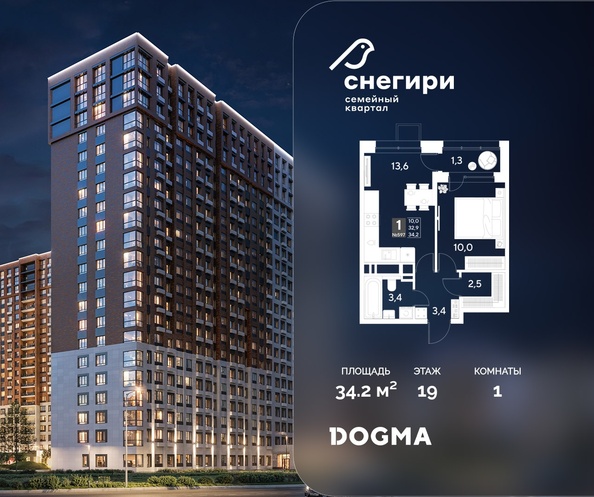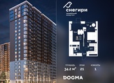 Срок сдачи: 4 кв. 2027, общей площадью 34.2 кв.м., на 21 этаже.