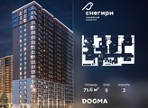 В продаже 3-комнатная квартира от застройщика! ЖК «Снегири» г. Омск, Литер 1