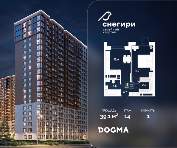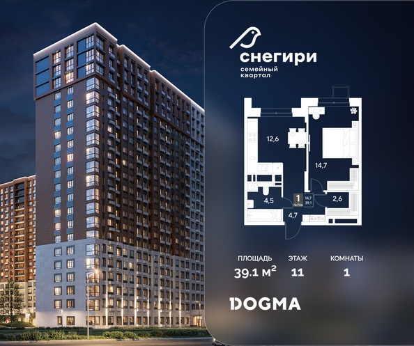 Срок сдачи: 4 кв. 2027, общей площадью 39.1 кв.м., на 11 этаже.