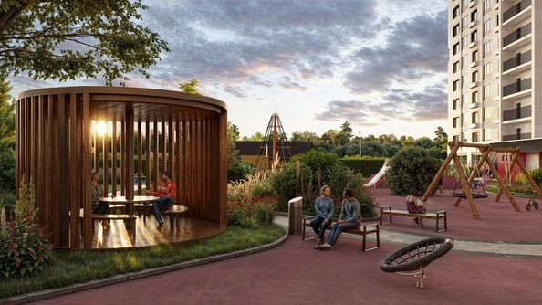 В проекте появятся благоустроенные зелёные дворы без машин, зоны отдыха, детские и