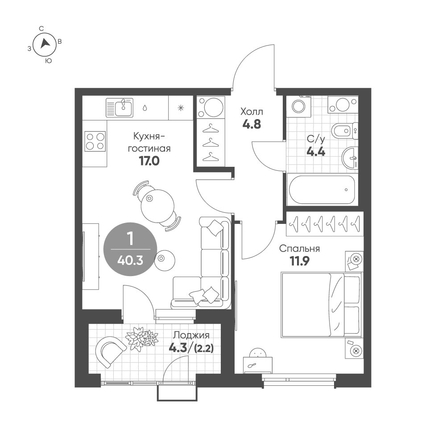 Продается квартира 338, по адресу г. Омск, ул. Волгоградская, корпус Зеленая река, 2 очередь, корпус 3 в Зеленая Река на 9 этаже, с площадью 40.3 м2. Номер объявления SD55-282793.