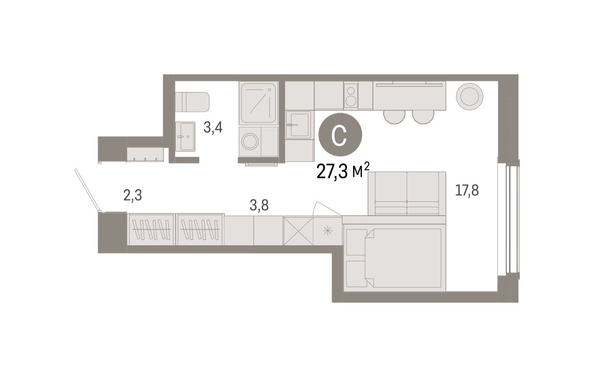 Продаётся с кладовой. Студия в Кварталах Драверта. Особенности планировки: предчистовая отделка. № квартиры в нашей базе: ДВТ06-Ж1.2.1. Номер объявления SD55-282926.