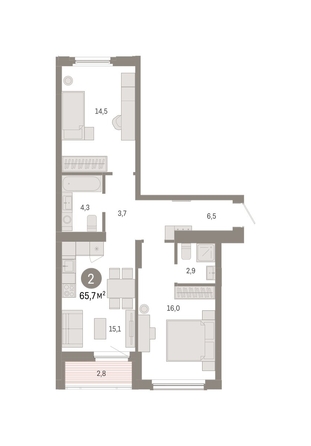 Квартира с кухней-гостиной и двумя спальнями в Кварталах Драверта. Особенности планировки: окна на две стороны, окна в пол, вид во двор, панорамное остекление, тёплая лоджия, разнесённые спальни, предчистовая отделка, мастер-спальня.