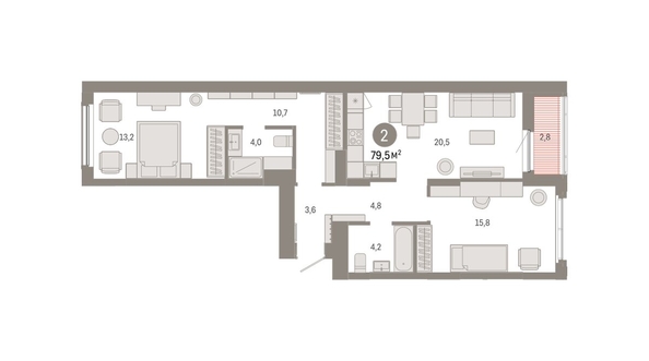 Квартира с кухней-гостиной и двумя спальнями в Кварталах Драверта. Особенности планировки: окна на две стороны, гардеробная, окна в пол, вид во двор, панорамное остекление, тёплая лоджия, разнесённые спальни, предчистовая отделка, мастер-спальня.