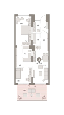 Квартира с кухней-гостиной и двумя спальнями в Кварталах Драверта. Особенности планировки: окна в пол, вид во двор, отдельный вход, панорамное остекление, предчистовая отделка, терраса на крыше.
