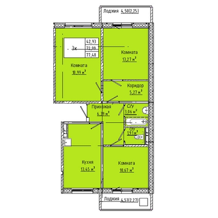 Общая площадь квартиры — 77.48 кв.м. Тип дома — панельный. Компания-застройщик — ВИТА.