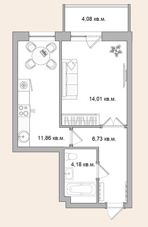 Общая площадь квартиры — 40.86 кв.м. Тип дома — монолит-кирпич. Компания-застройщик — Домострой.
