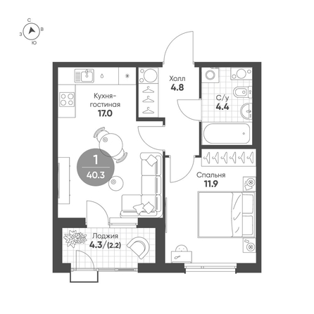 Продается квартира 334, по адресу г. Омск, ул. Волгоградская, корпус Зеленая река, 2 очередь, корпус 3 в Зеленая Река на 8 этаже, с площадью 40.3 м2. Номер объявления SD55-283701.