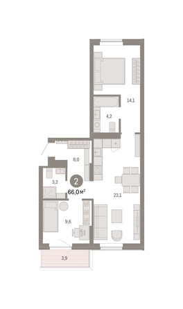 Квартира с кухней-гостиной и двумя спальнями в Кварталах Драверта. Особенности планировки: окна на две стороны, новые лоты, вид во двор, разнесённые спальни, предчистовая отделка, мастер-спальня, балкон.