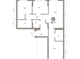 Квартира с кухней-гостиной и тремя спальнями в Кварталах Драверта. Особенности планировки: балкон, окна на две стороны, предчистовая отделка, разнесённые спальни.