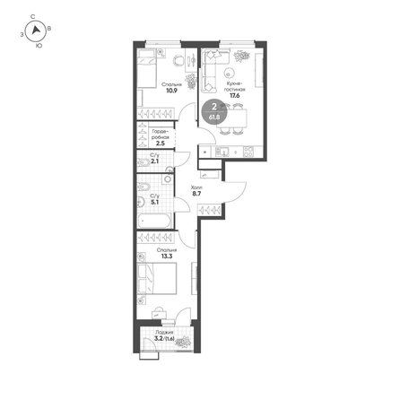 Продается квартира 9, по адресу г. Омск, ул. Волгоградская, корпус Зеленая река, 2 очередь, корпус 1 в Зеленая Река на 3 этаже, с площадью 61.8 м2. Номер объявления SD55-283761.