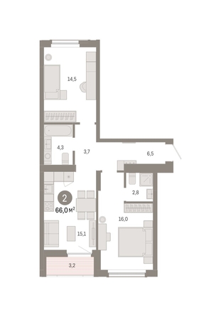 Квартира с кухней-гостиной и двумя спальнями в Кварталах Драверта. Особенности планировки: окна на две стороны, новые лоты, вид во двор, тёплая лоджия, разнесённые спальни, предчистовая отделка, мастер-спальня.