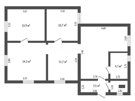 Просторный дом площадью 60,9 кв. м. Планировка дома включает в cебя веранду, кухню и три жилые комнаты. Совмещенный санузел с душевой кабиной.