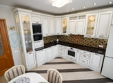 • Кухня: удобная и большая кухня, где можно собираться всей семьей и готовить любимые блюда. Остается кухонный гарнитур, стол и 4 стула. Все гармонично подобрано и со вкусом.