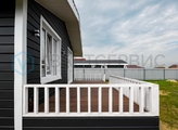 •Дoм c террасой, внешним освещением и большими окнами. Полностью наружная отделка, внутренняя отделка - white box.