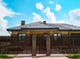 Металлическая входная дверь с терморазрывом. Монтаж забора, калитки, ворот. Бетонная отмостка. Гараж 4,5*7,5, терраса 18 м2