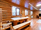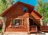 Отделка дома выполнена из экологически чистых материалов: бревенчатые стены, деревянные перекрытия и перегородки. Крыша покрыта металлочерепицей, что обеспечивает долговечность и надежность конструкции.