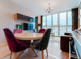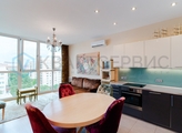 Квартира расположена в престижном доме бизнес-класса, что гарантирует высокий уровень комфорта. Панорамные окна и высокие потолки создают ощущение простора и комфортную обстановку. Современная кухня объединена со столовой и гостиной, что делает её идеальным местом для семейных посиделок. Кондиционеры поддерживают комфортный микроклимат в помещении. Две уютные изолированные спальни позволяют сохранять приватность личного пространства.