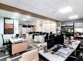 С огромных витражных окон открывается великолепный вид на центр Омска и метромост, что делает это место еще более привлекательным для размещения офиса.
