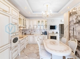 - Просторная кухня-гостиная с выделенной зоной отдыха и кухонным гарнитуром из массива.