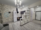 Студия с современным ремонтом и панорамными окнами. Просторная кухня оборудована всем необходимым: холодильник, плита, электрочайник, вытяжка и встроенная мебель. В комнате установлен кондиционер и телевизор. Места хранения-вместительный шкаф-купе и стеллаж.